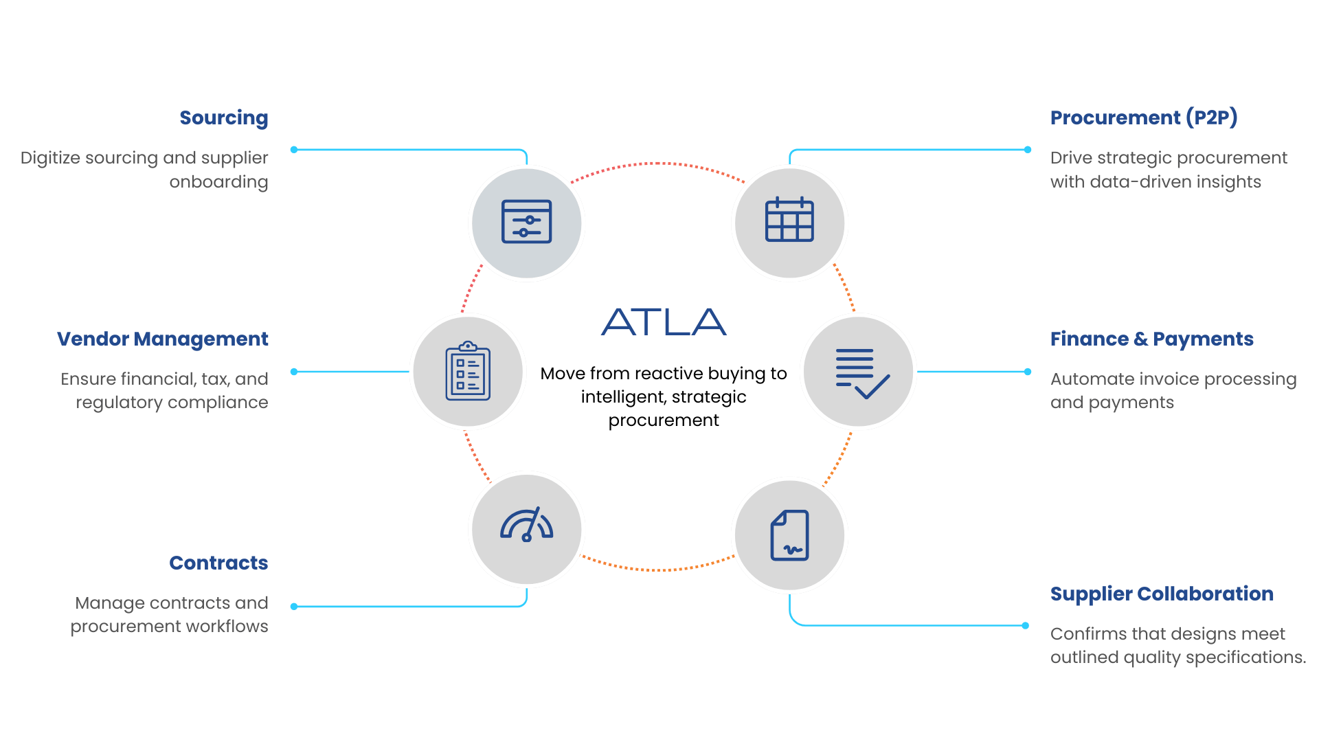 ATLA eliminates fragmentation by unifying procurement, finance, and supplier ecosystems into one intelligent platform